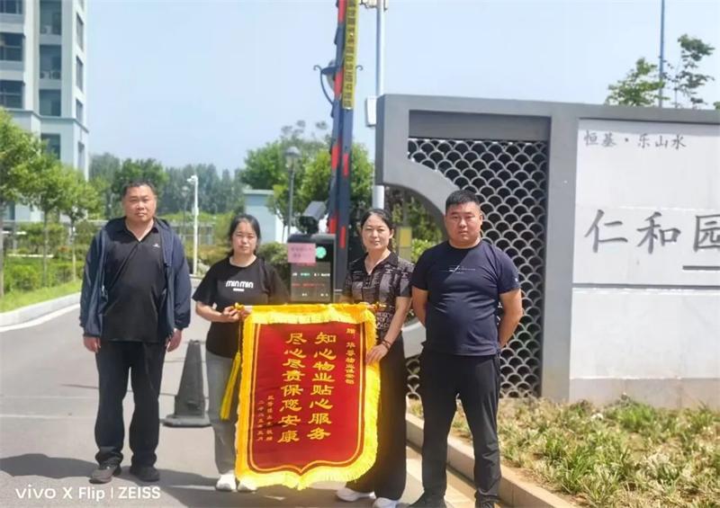 近日,经开集团恒基·乐山水小区上演暖心一幕,业主代表将绣有“知心物业贴心服务,尽职尽责保您安康”的锦旗郑重赠予华尊物业服务团队,以表达对工作人员的诚挚谢意。