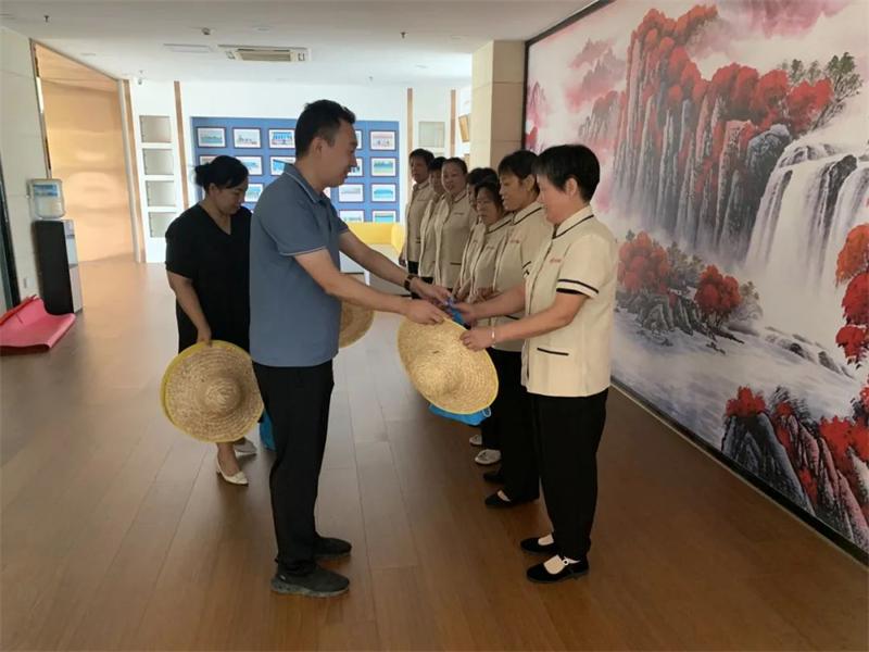 随后,允升物业负责人及分管科室负责人先后前往美郡公寓、管委会大楼、中京智能产业园、垃圾中转站等项目一线,将清凉包逐一送到员工手中,并现场检查防暑物资配备、作业时间调整等落实情况。针对夏季高温作业特点,相关负责人要求各项目部科学调整作业时段,尽量避开高温峰值,同时加强现场巡查,确保员工健康与安全生产两手抓、两不误。