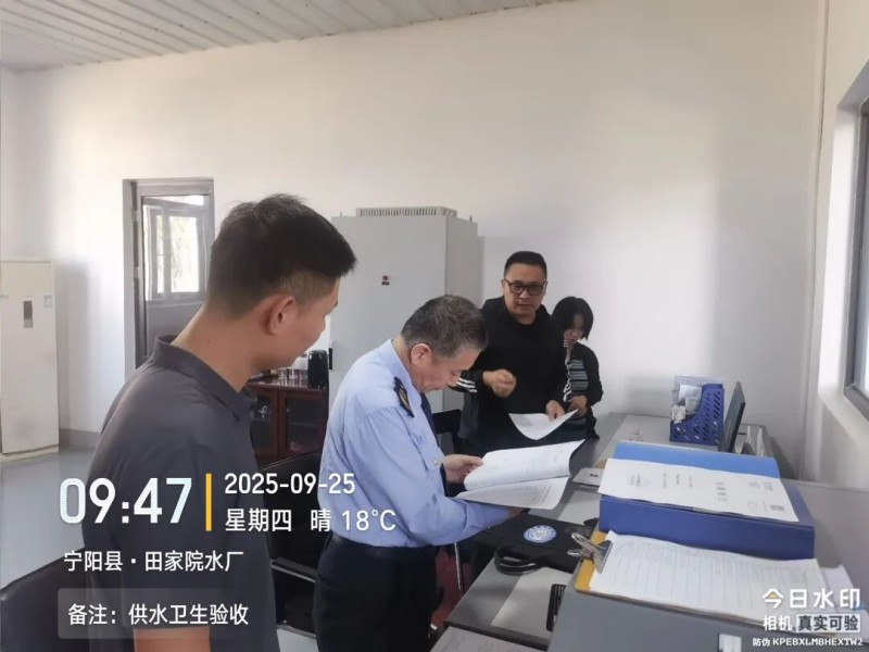 近日,由宁阳县疾控中心公共卫生监督科科长张军、县审批局民生事务科科长袁英等组成的联合验收组,对恒通水务田家院水厂开展供水卫生许可验收工作。恒通水务工作人员全程陪同,详细介绍水厂运营与卫生管理情况。