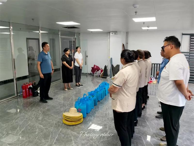 随后,允升物业负责人及分管科室负责人先后前往美郡公寓、管委会大楼、中京智能产业园、垃圾中转站等项目一线,将清凉包逐一送到员工手中,并现场检查防暑物资配备、作业时间调整等落实情况。针对夏季高温作业特点,相关负责人要求各项目部科学调整作业时段,尽量避开高温峰值,同时加强现场巡查,确保员工健康与安全生产两手抓、两不误。