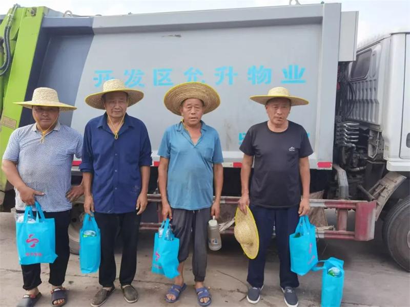 为切实做好夏季防暑降温工作,保障高温一线员工的身体健康与作业安全,7月10日,允升物业组织开展“送清凉”慰问活动。活动由经开集团副总经理王统亚带队,为坚守岗位的环卫、绿化工人送上防暑物资,并致以诚挚的问候与暖心关怀。